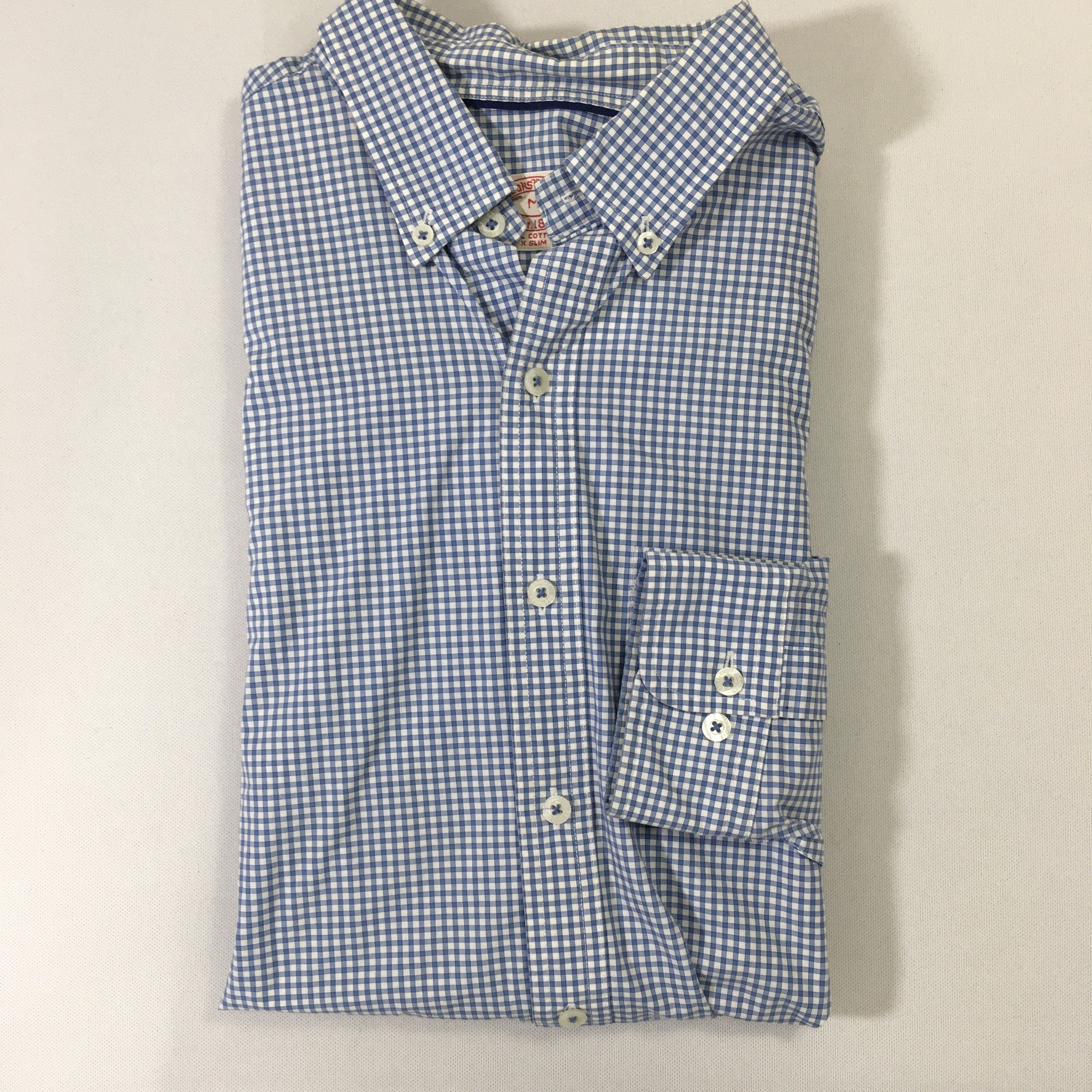 100-1039 Brooks Brothers, Blue, Size: Medium white and blue plaid button up shirt 100% cotton good condition