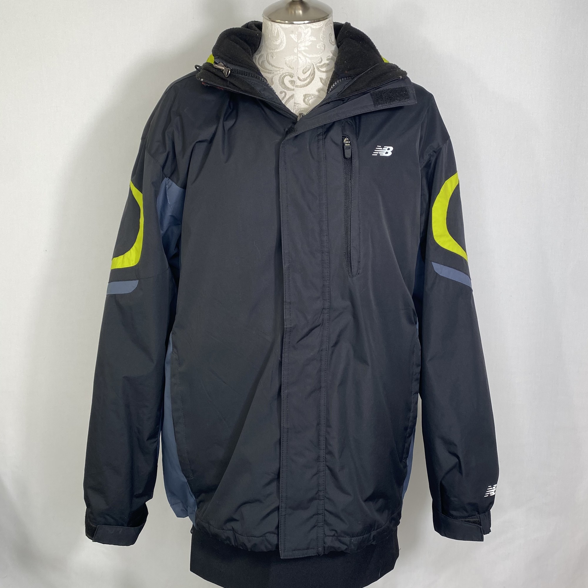 100-1042 New Balance, Black, Size: Large thick black grey and green zip up winter coat mens 100% polyester good