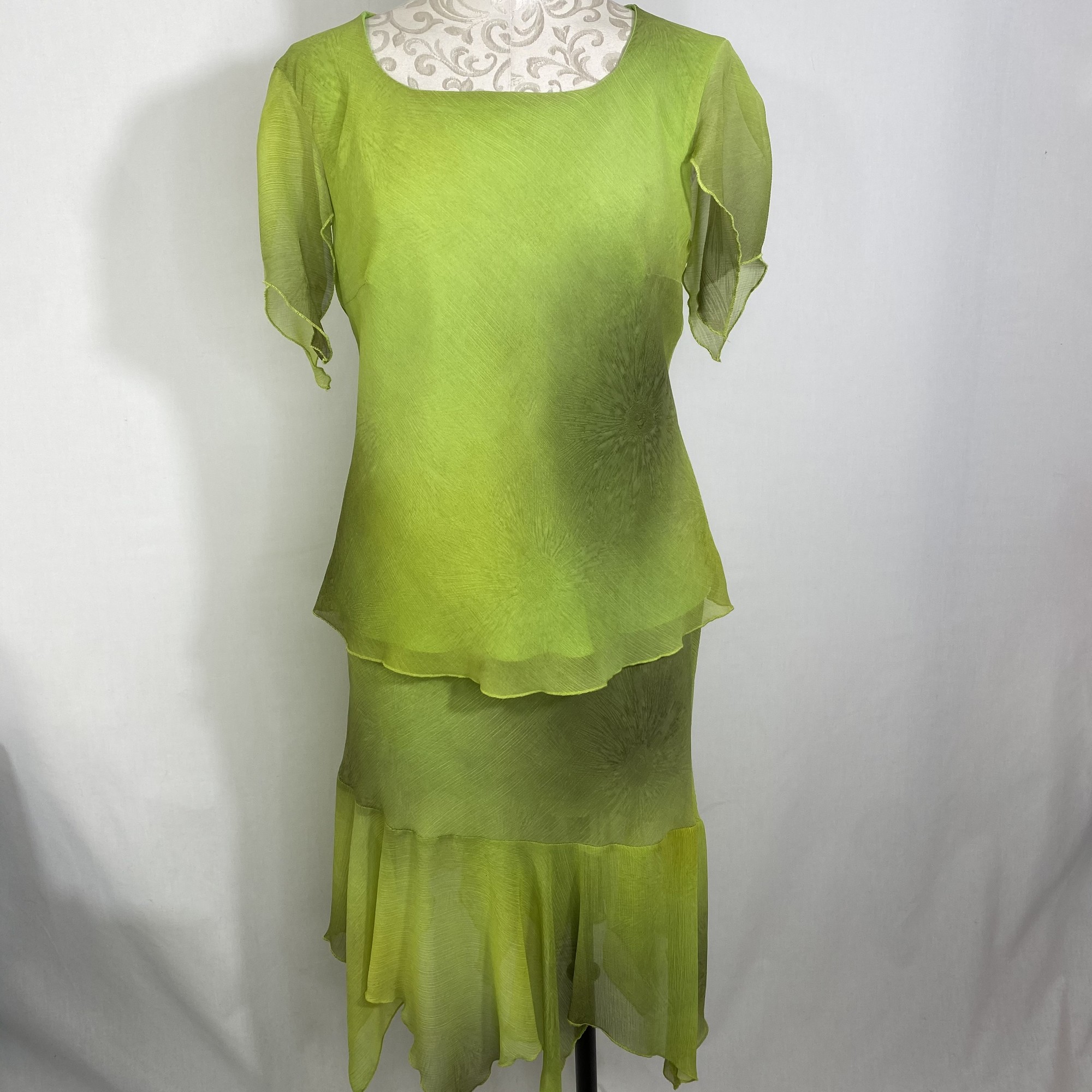 100-141 Artesia Flowy Set, Green, Size: Large long ombre skirt and short sleeve top