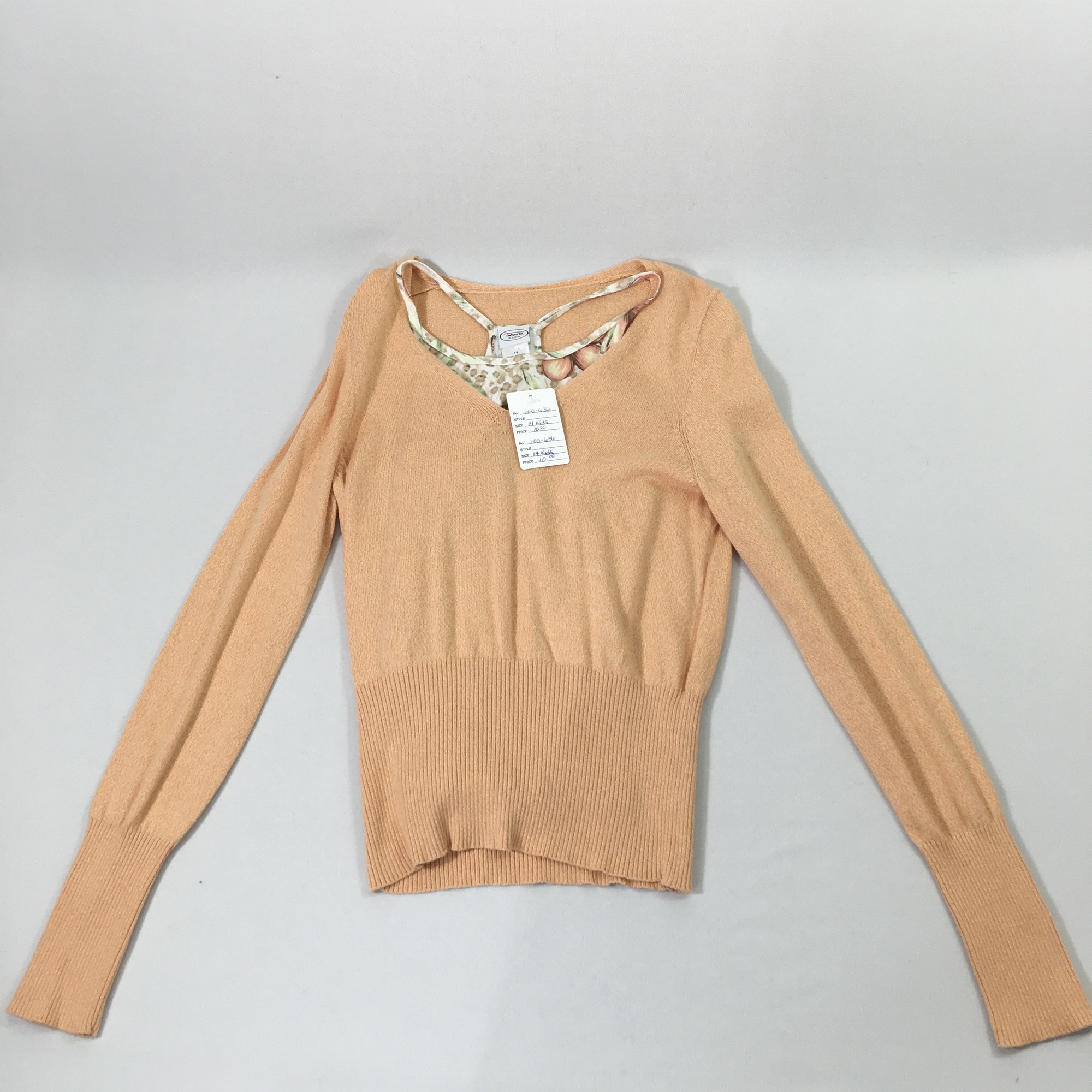 100-636 Talbots Kids, Orange, Size: 14 Kids Orange long sleeve sweater w/tank top 100% cotton