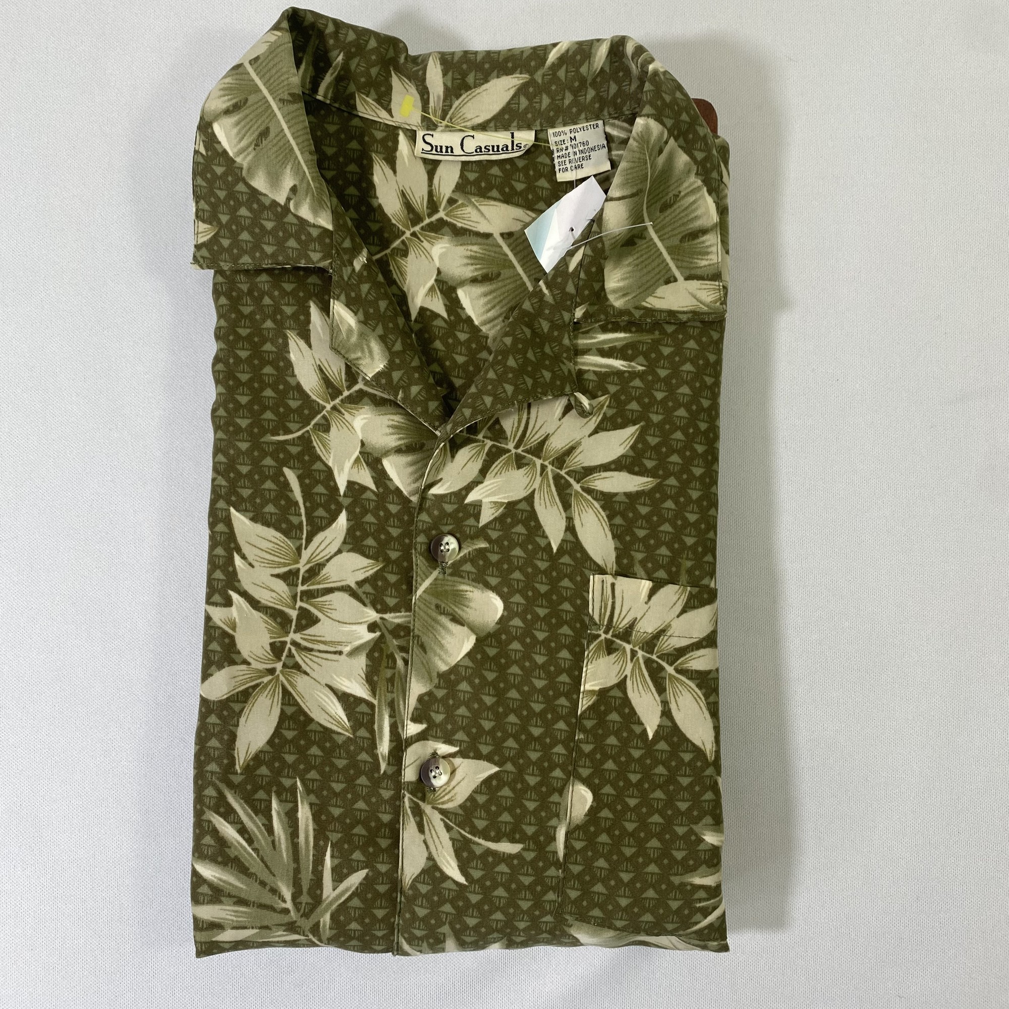 102-123 Sun Casuals, Green, Size: Medium Green leaf print short sleeve button down shirt 100% polyesther