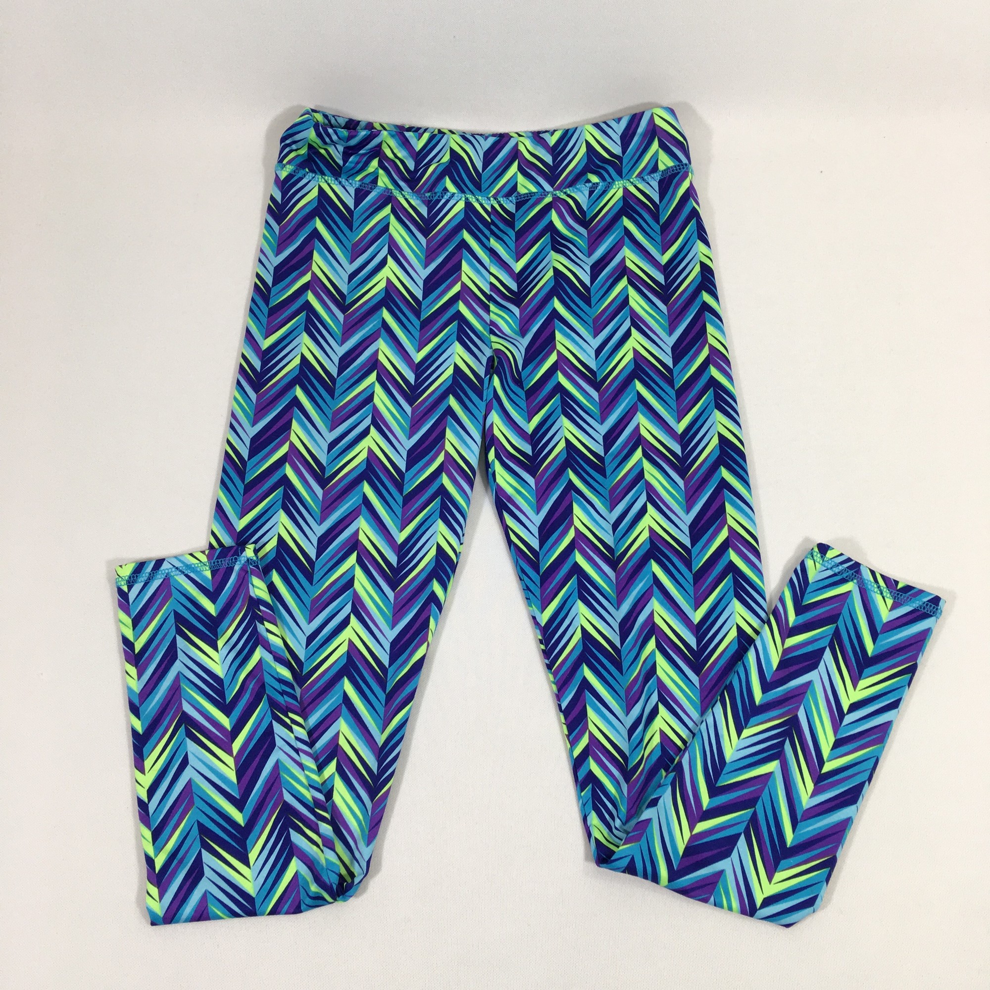 110-151 Layer 8, Blue+mul, Size: Large purple blue and green patterned leggings 88% polyester 12% spandex good