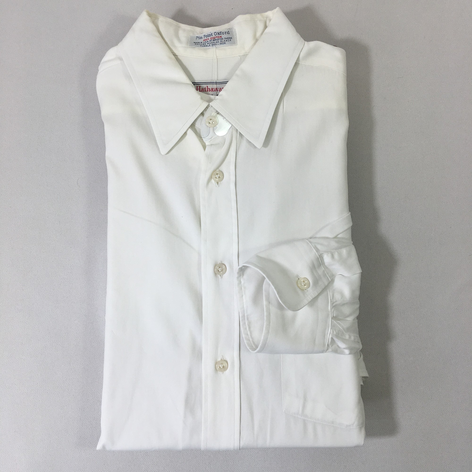 114-081 Hathaway, White, Size: 15 1/2-33 long sleeve white mens button-up shirt 100% cotton
