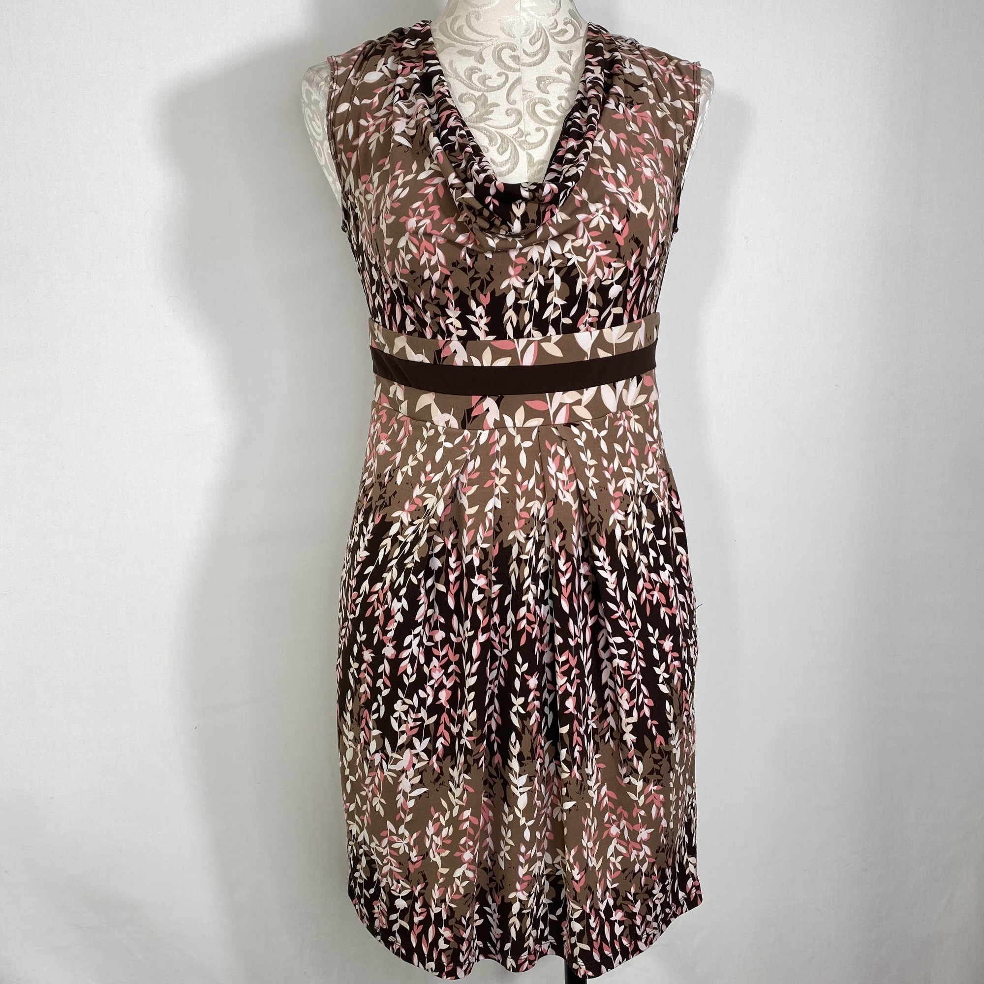 125-031 Bcbg Maxazria, Brown An, Size: Small brown pink and white floral dress 94% polyester 6% spandex good