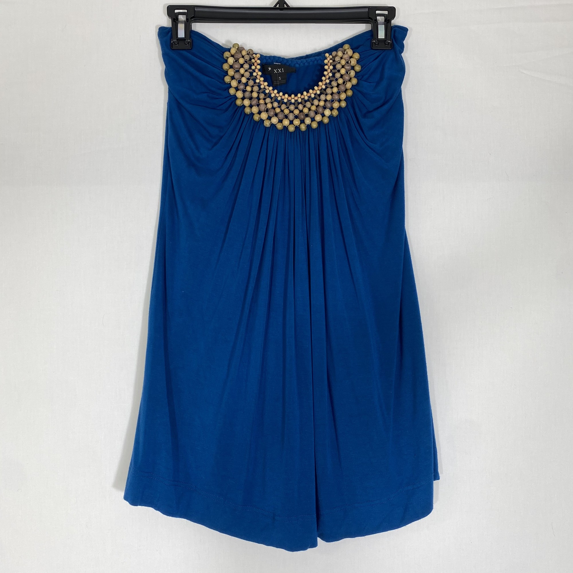 125-032 Xxi, Blue, Size: Small strapless blue dress with beading in the front 93% rayon 7% spandex good