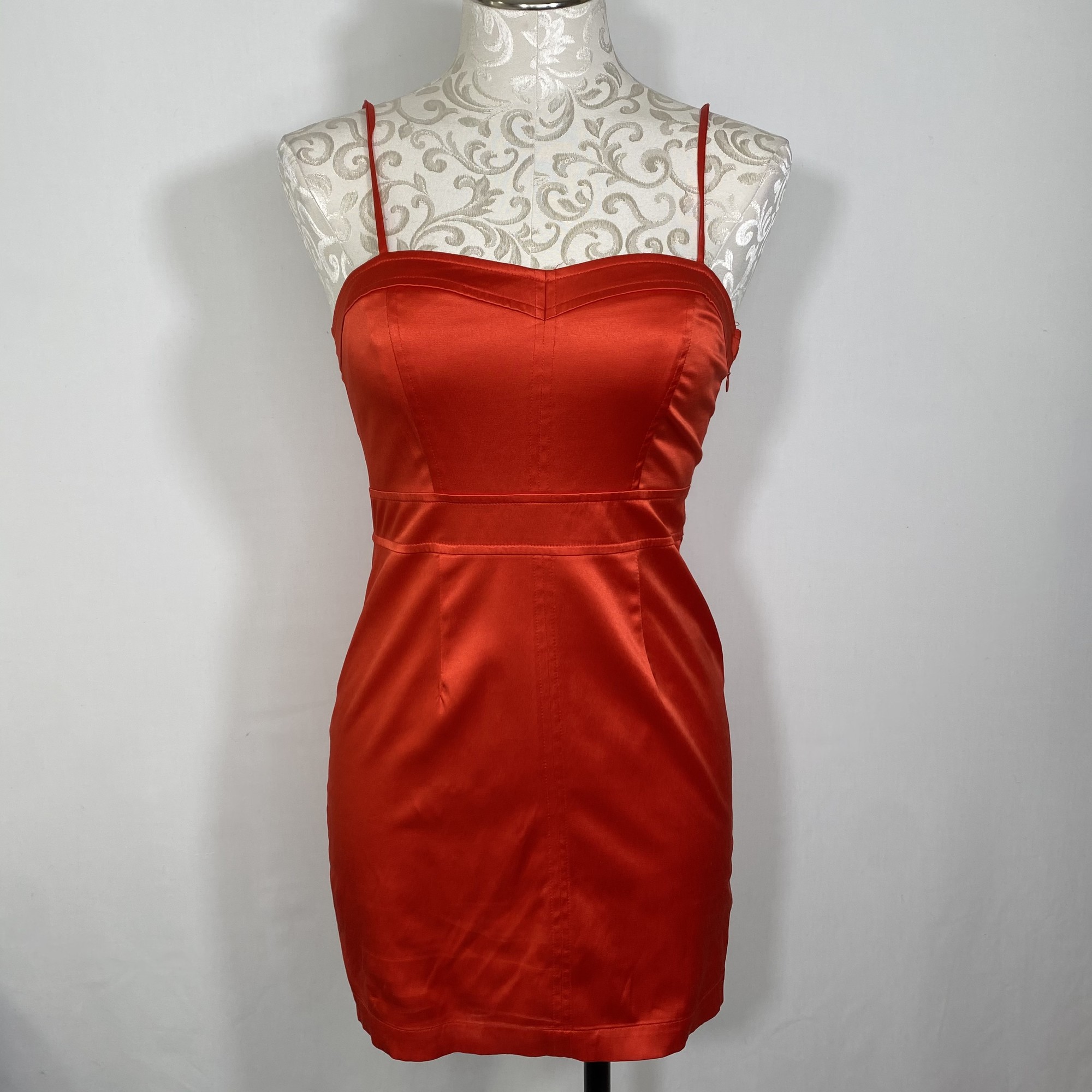 125-036 Forever 21, Red, Size: Small shiny red dress with thin straps 55% polyester 43% cotton 2% spandex good
