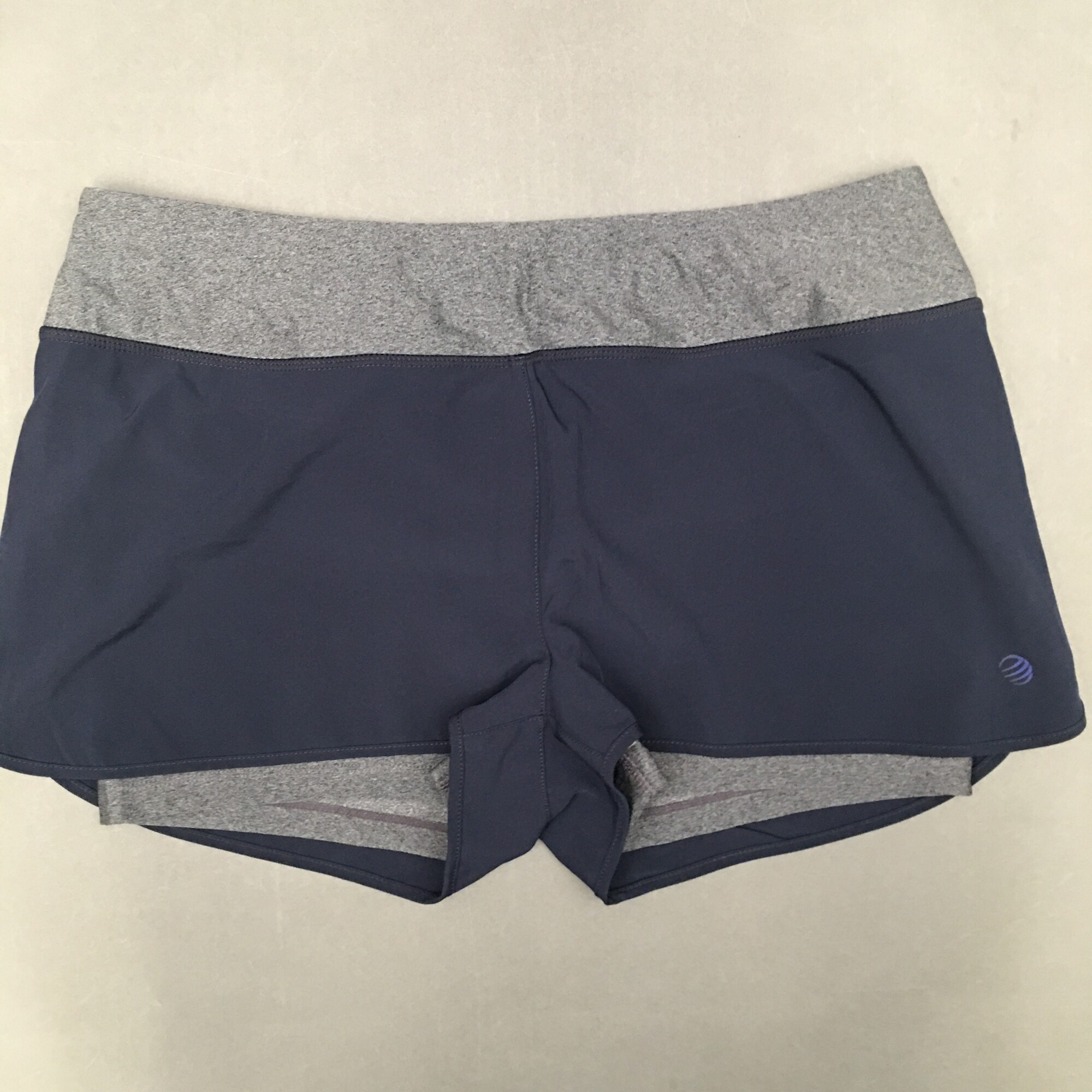 MPG Athletic Shorts Navy grey waist band and inteiror liner shorts, zipper waist pocket at back , Size: Large
