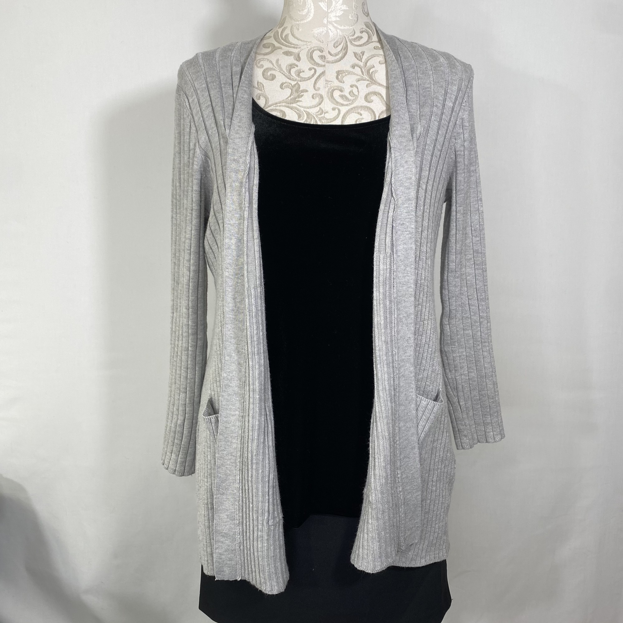 Home / Cardigans / Pointerle Ribbed Cardigan Pointerle Ribbed Cardigan$15.00 pointerle-ribbed-cardigan-8152 1 in stock Pointerle Ribbed Cardigan quantity Add to cart Add to wishlist SKU: 8152 Category: Cardigans Tag: Cardigans Description Additional information Reviews (0) Description Pointerle Ribbed Cardigan, Grey, Size: Small has pockets 70% rayon 30% polyester Additional information Size Small Reviews There are no reviews yet. Be the first to review “Pointerle Ribbed Cardigan” Cancel replyYour email address will not be published. Required fields are marked *Your rating * Rate… Perfect Good Average Not that bad Very poor Your review *Name * Email * Save my name, email, and website in this browser for the next time I comment. Δ Related products Hartford Tie Waist Cardig $30.00 Add to cart See You Monday Long Car $15.00 Add to cart Sheer Open Cardigan $20.00 Add to cart Pure Jill $20.00 Add to cart