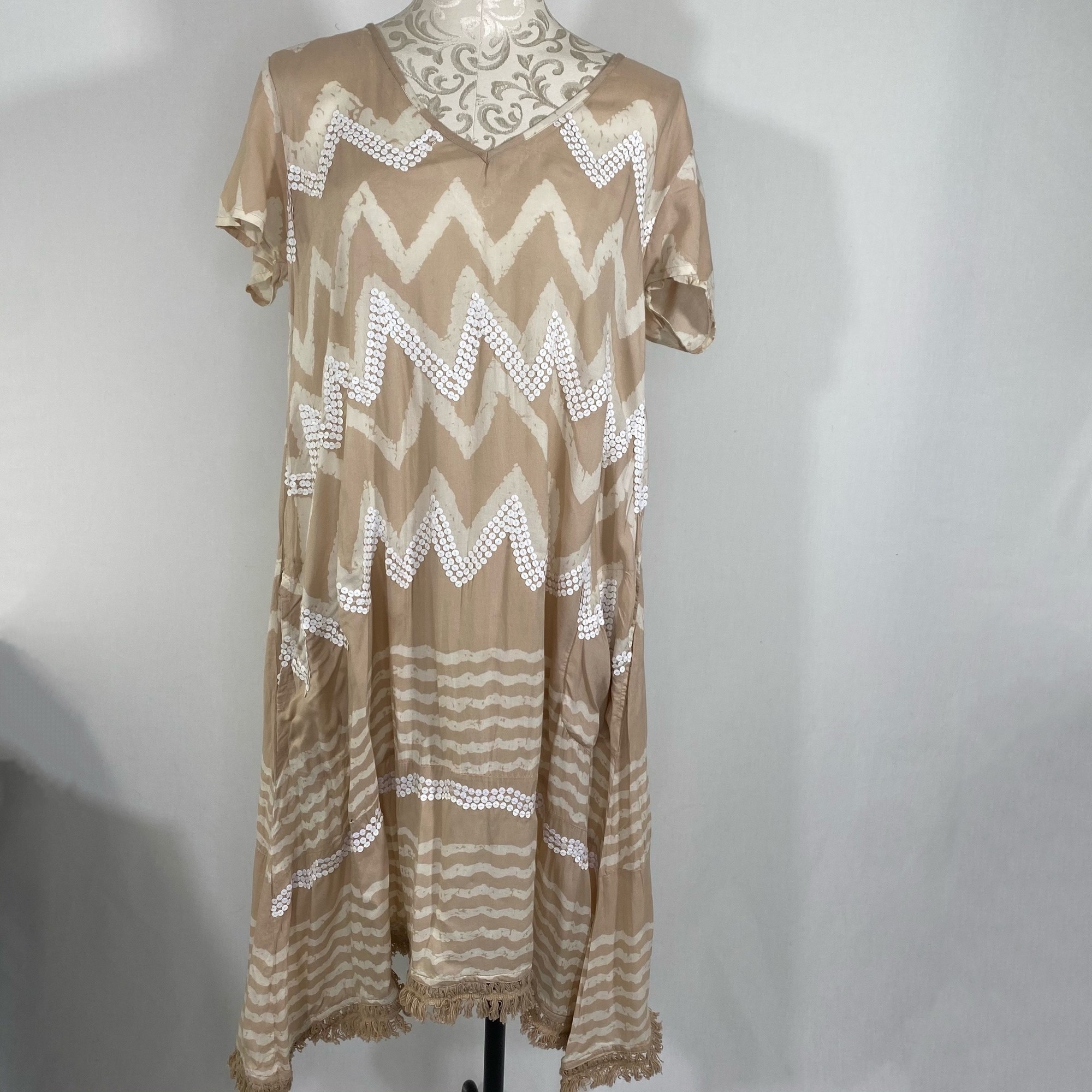 Ruby Yaya Chevron Pattern, Tan, Size: Medium Short sleeve sequin dress with tassles around the bottom 100% viscose